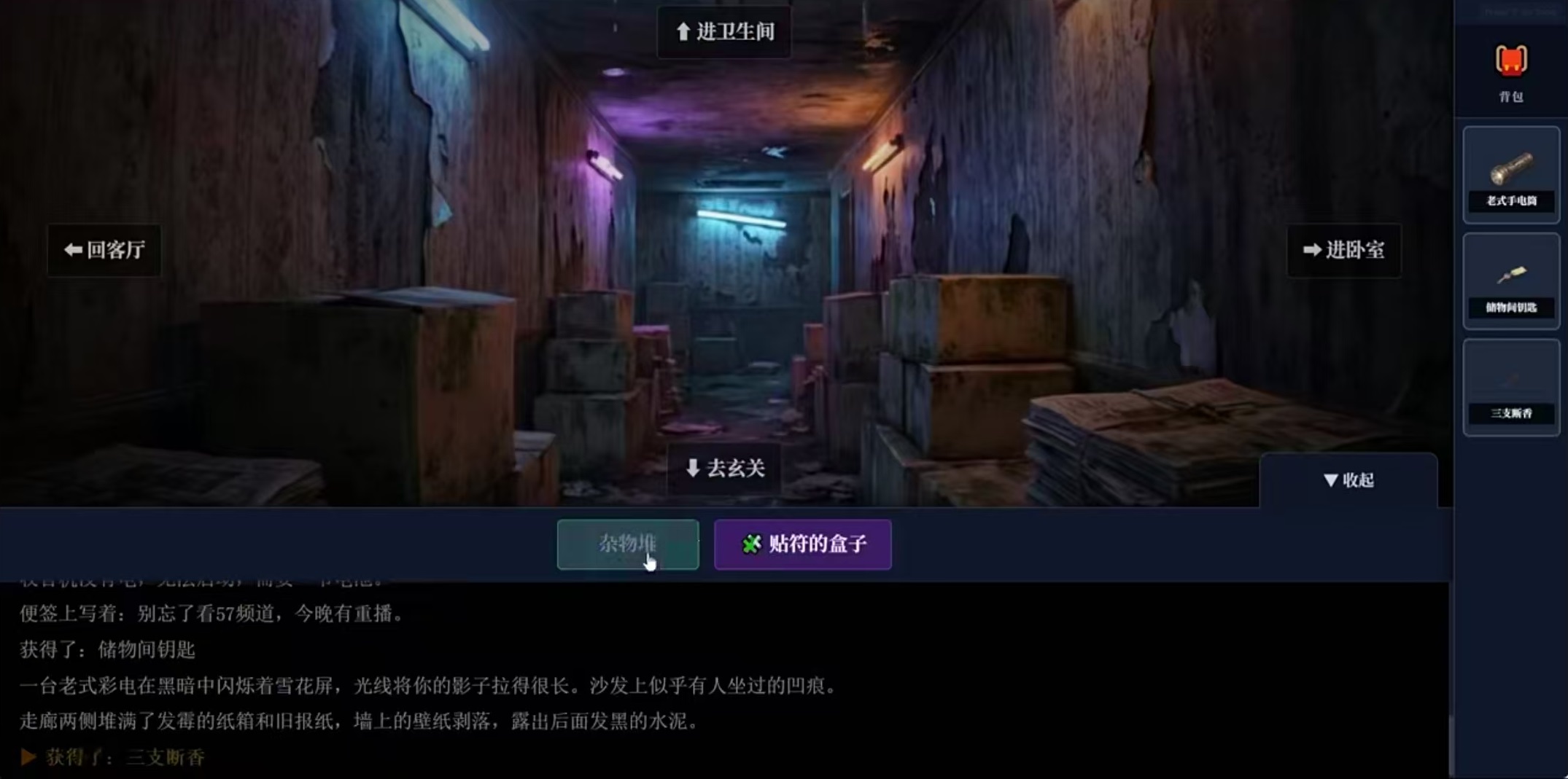游戏摒弃传统Jump Scare设计,全程依托环境光影变化、低频环境音效、拟真拟态音源(如楼道回声、水管滴漏、广播杂音)及碎片化文本线索推进叙事节奏。整体流程精炼紧凑,单局完整通关时长约15分钟,契合现代用户高频次、短周期的移动娱乐需求。