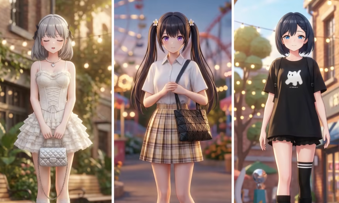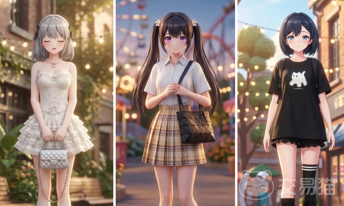 2、个性表达系列:面向性格鲜明的角色设定,涵盖日系原宿、青春叛逆、元气萝莉三种子风格。破洞牛仔裤、oversize卫衣、学院风领结等元素强化人设记忆点,适用于社团冲突、舞台演出等强戏剧性章节。