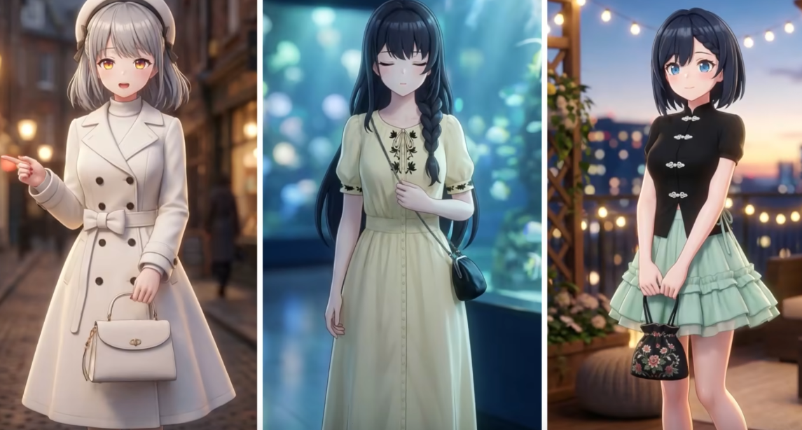 1、周末约会系列:聚焦大学生活场景,主打清新甜系与轻熟日常风。棉质连衣裙、针织开衫、百褶短裙等单品构成基础搭配,辅以蝴蝶结发卡、贝雷帽等配饰,适配图书馆偶遇、咖啡厅小聚等高频互动剧情。