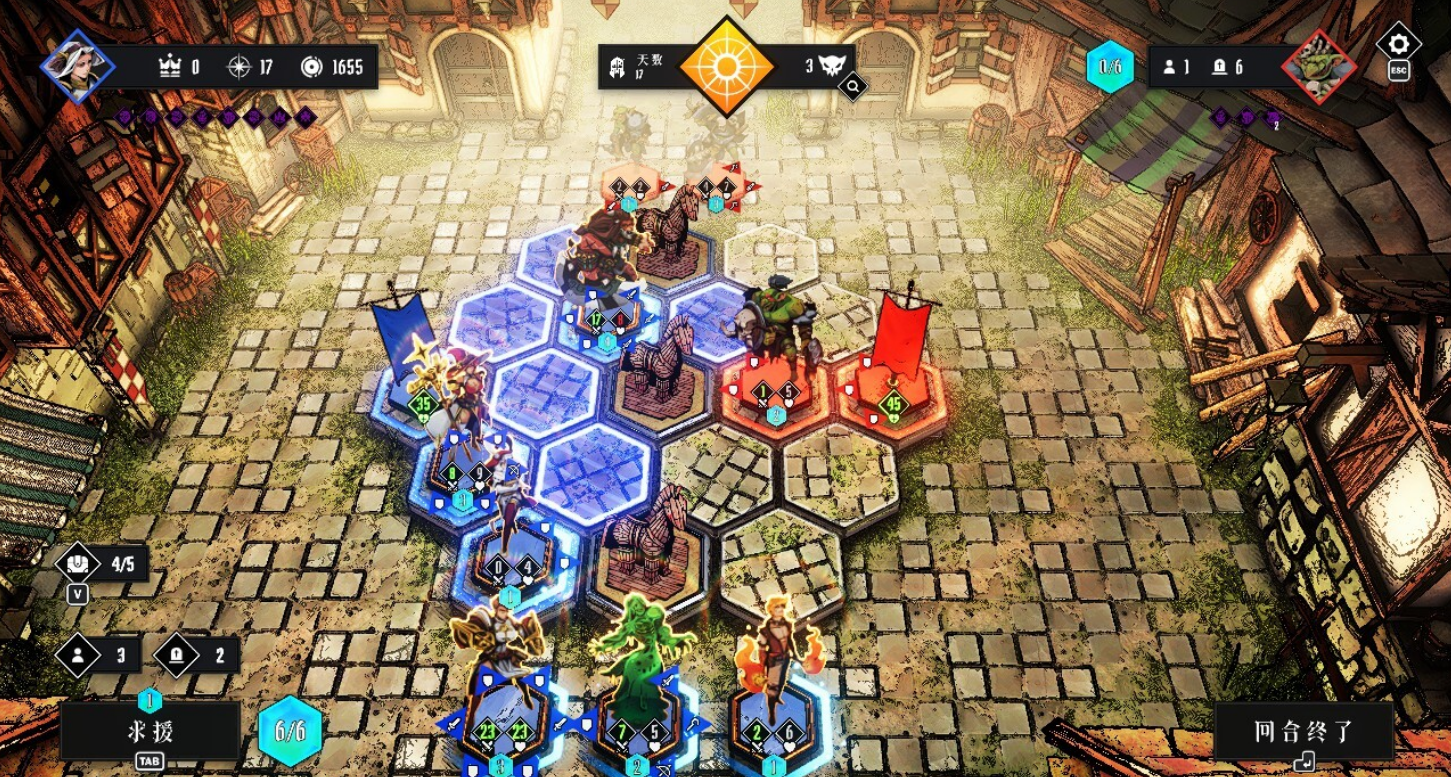 本作广受好评的核心亮点集中于三方面:六边形网格战术系统、Roguelike式随机构筑机制,以及贯穿全程的“原罪抉择”叙事框架。其中,“指挥姿态”支持六向旋转操作,使角色朝向本身成为关键战术变量;而威胁值与原罪选项深度绑定,每一次选择不仅影响角色能力倾向,还将动态调整敌方强度与事件分支,最终导向差异化结局。美术层面采用高完成度立绘配合暗黑系视觉语言,整体氛围营造扎实而统一。