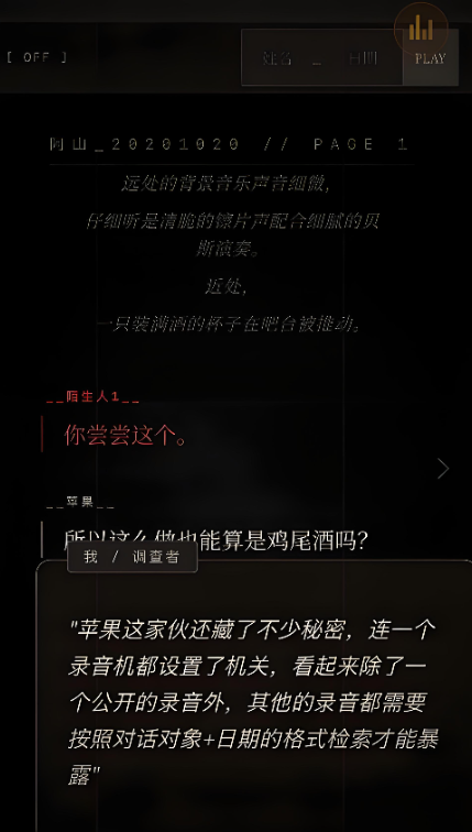 《昨日酒客》是一款以沉浸式悬疑解密为核心的单机文字冒险游戏,玩家将化身职业侦探,深入一家氛围诡谲的复古酒吧,调查一系列离奇失踪事件。游戏强调逻辑推理与细节观察,所有真相均需通过碎片化线索逐步拼合——从墙角泛黄的便签、吧台下隐匿的旧物,到关键人物留下的模糊录音,每一条信息都可能成为破局钥匙。