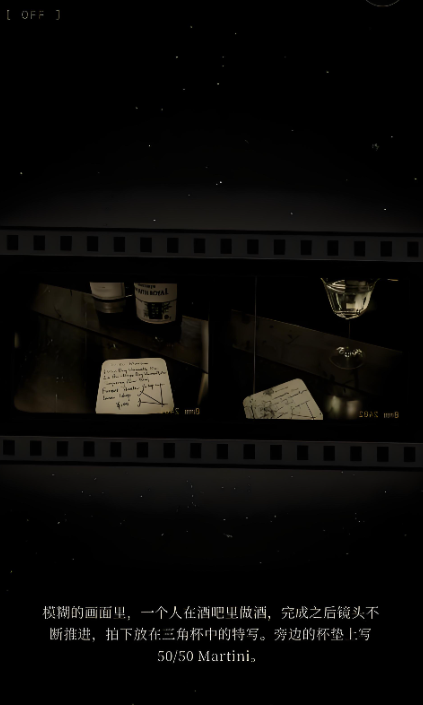 游戏采用高度风格化的视觉语言:全篇以黑白主色配合胶片颗粒质感呈现,转场设计融入老式放映机机械音效与暗黄基调光影,强化年代悬疑张力。环境细节经过精密编排,空荡吧台、未熄灭的烟灰缸、倒扣的酒杯等静物皆暗藏叙事伏笔,大幅提升场景代入深度。