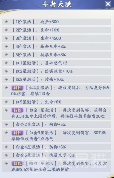 “太虚拳”不仅是输出手段,更是紫妍战术中枢:该技能除基础伤害外,还能基于自身当前生命值生成相当于70%生命上限的护盾,持续两回合。这一机制使其在中后期团战中具备极强的站场韧性。天赋成长路径同样围绕生存与功能性展开——五阶阶段侧重提升生命值、暴击率与抗爆率;进阶至红星阶段后,解锁怒气获取增益与界面特效优化;当达成红四星时,可触发核心特性:释放技能后,为一名队友分担50%所受伤害(限单回合),这对保护萧炎、萧薰儿等关键输出或治疗角色具有不可替代的战略意义。此外,白金一星激活后,每次受击均可获得相当于自身3.5%生命上限的护盾,该效果每场战斗最多触发20次,累计护盾量极为可观。