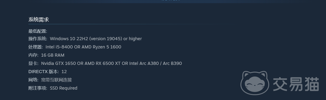 截至目前,开发商仅公布了最低系统要求,尚未发布推荐配置方案。根据官方说明,运行该游戏需满足以下基础条件:操作系统为Windows 10 64位或更高版本;处理器不低于Intel Core i5-8400;内存容量不少于16GB;显卡需达到NVIDIA GeForce GTX 1650或同级性能水平;安装空间预留约100GB。若设备未达上述标准,可能出现无法启动、频繁掉帧甚至黑屏等问题,即使调至最低画质亦难以稳定运行。