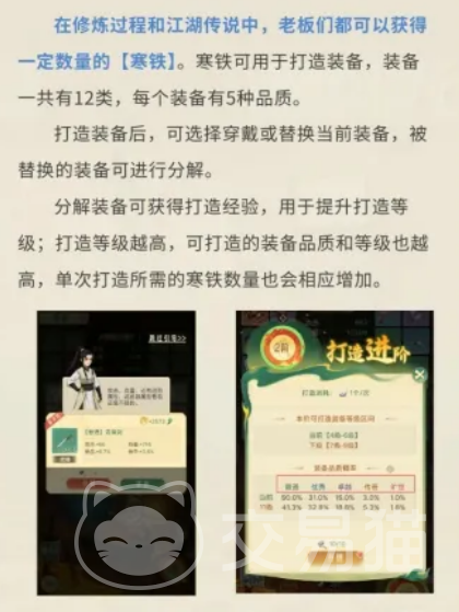 装备系统共设12个装备部位,每个部位支持5种品质划分,品质越高,基础属性成长越显著。打造等级决定可合成装备的最高品质上限,等级提升需消耗寒铁兑换打造经验,而装备分解是获取经验的主要方式。每件装备具备基础属性与进阶属性双重结构,合理搭配可构建差异化战斗流派。经实战验证,“高闪避+高抗暴”组合具备较强生存容错能力,推荐优先尝试。装备对应功法后,还可激活专属怒气技能,在江湖传说等战斗事件中发挥关键作用。