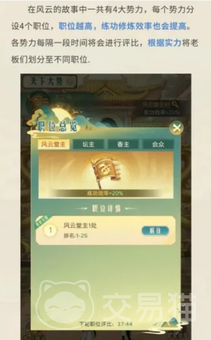 活动起始阶段需完成“拜师”仪式,确认拜入步惊云门下,方可解锁全部修炼体系。修炼系统围绕“真气”积累展开,真气值达标后触发境界晋升。系统支持离线挂机自动获取真气,确保资源持续产出;若主动消耗体力请求师父指导,则可获得更高倍率的真气加成,该加成随当前境界提升而显著增强。此外,玩家在势力中所担任的职位等级直接影响修炼效率——职位越高,单位时间真气增长越快,因此积极参与势力建设与排名竞争,是提升修炼速度的关键路径。