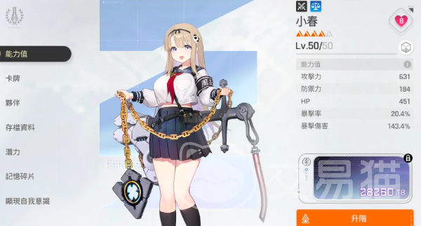 方法一:进入角色图鉴界面,在角色基础属性面板中可直接读取星级数值。该区域同步展示等级、潜力值、卡牌归属、伙伴关联及存档状态等结构化信息;同时支持实时查看攻击力、防御力、HP上限、暴击率与暴击伤害等关键养成维度,便于横向对比角色成长空间。
