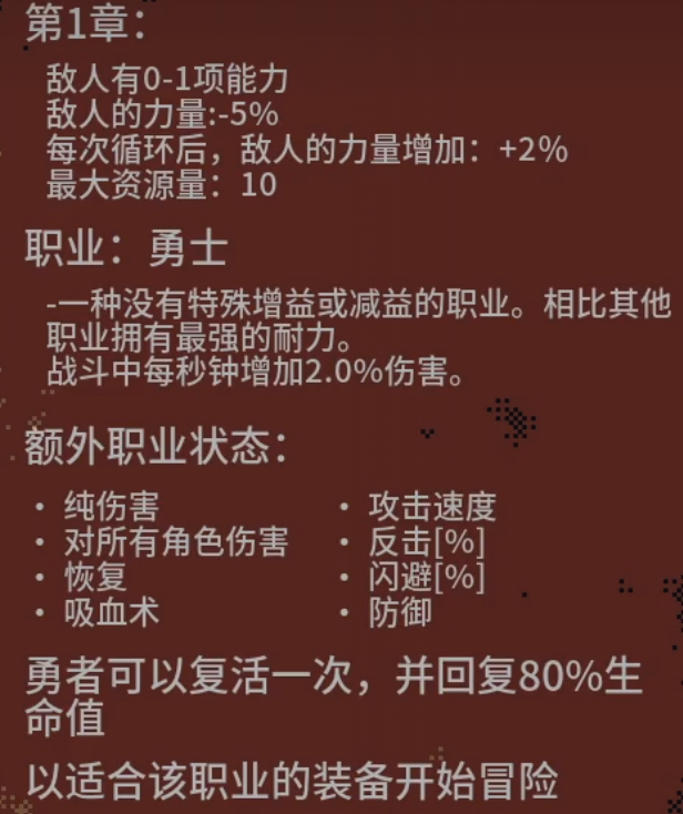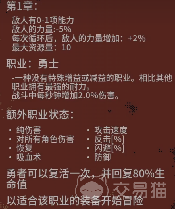 游戏初始仅开放“勇者”角色,无专属技能,基础属性均为默认基准值,但具备两项关键优势:全角色中最高的耐力值,以及一次被动复活能力——死亡后自动复活并恢复80%生命值。这一设计显著降低新手试错成本,使玩家能在实战中逐步建立操作手感与资源管理意识。