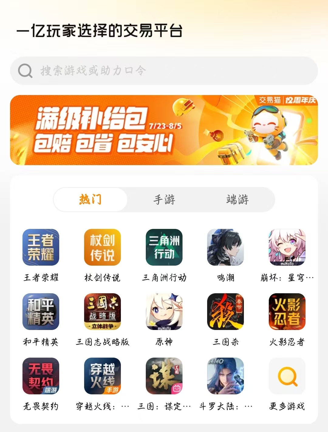 出售账号哪个平台好?类出售平台对于大家来说还是比较重要的,毕竟对于常玩新游戏的用户来说,出售老账号选择一个适合的平台,是大家的刚需,可以试试小编下面带来的这一款排名第一的手游交易APP——交易猫,能够有效保障大家的交易安全,而且可交易的游戏种类众多。