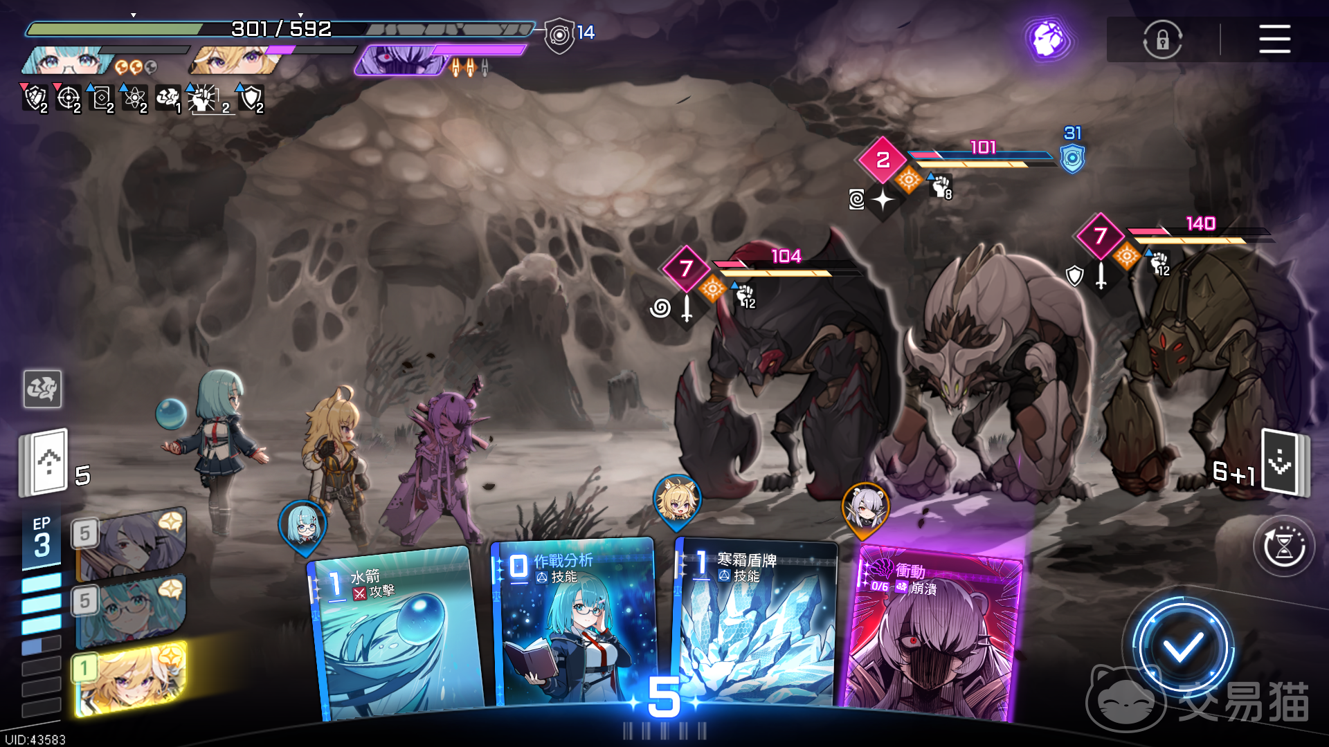 此外,创伤模式引入双重压力叠加机制:每回合自动增长基础压力值,且战斗次数与敌人血量呈正向关联——越频繁交战,后续怪物越难应对。因此高效清场、规避无效战斗成为生存前提。一旦角色崩溃,全队最大生命值永久降低1/3,且该角色全部卡牌转为无伤害的崩溃卡;必须完整打出6张崩溃卡后才可恢复常态。这意味着单次崩溃不仅削弱即时战力,更会引发长期减益雪球效应。当队伍总生命值归零,或全员同时处于崩溃状态时,本次探索即宣告终结。每一决策都需权衡短期收益与长期风险。
