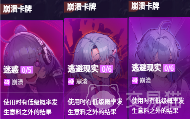 游戏提供双轨式难度结构:普通模式侧重体验节奏与成长反馈,而创伤模式则面向追求极限策略深度的玩家。该模式需在单局内首次触发任意角色“精神崩溃”后方可解锁。崩溃机制是本作战斗系统的核心变量——角色受击持续累积压力值,满格即进入崩溃状态,此时将强制替换为专属崩溃卡牌,例如妮娜的“迷惑”、米卡的“逃避现实”,直接改变技能链与战术选择,显著提升战局不确定性。