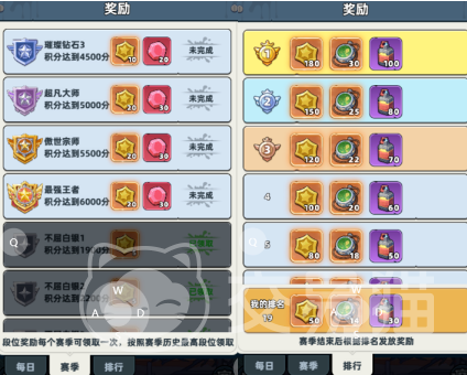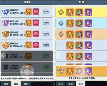 完整收益体系由三大奖励模块构成:其一为每日任务,完成当日10场对局且胜出5场即可领取,固定产出寻宝探测器与钞票,属高频刚需资源;其二为赛季段位奖励,以玩家当赛季达成的历史最高段位为唯一判定标准,仅可领取一次,奖励包含荣耀金币与钻石,段位等级与奖励数量呈正相关;其三为赛季排行奖励,在赛季结算时按最终积分排名发放,主要奖励为荣耀金币与寻宝探测器。
