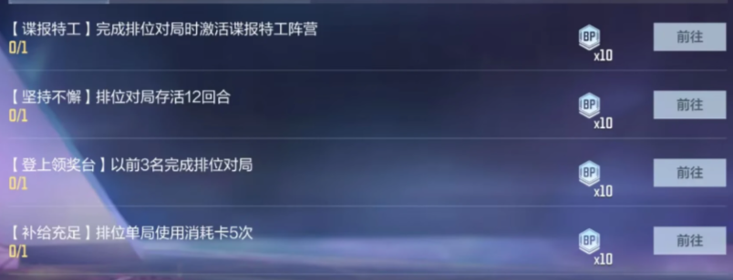 本季通行证系统迎来重要迭代,新增三类任务体系:日常、周常与挑战任务。其中日常任务每日开放,玩家登录游戏后即可查看全部可操作条目。每完成一项可获得10点通行证经验,单日累计上限为50点经验,即最多完成5个日常任务。