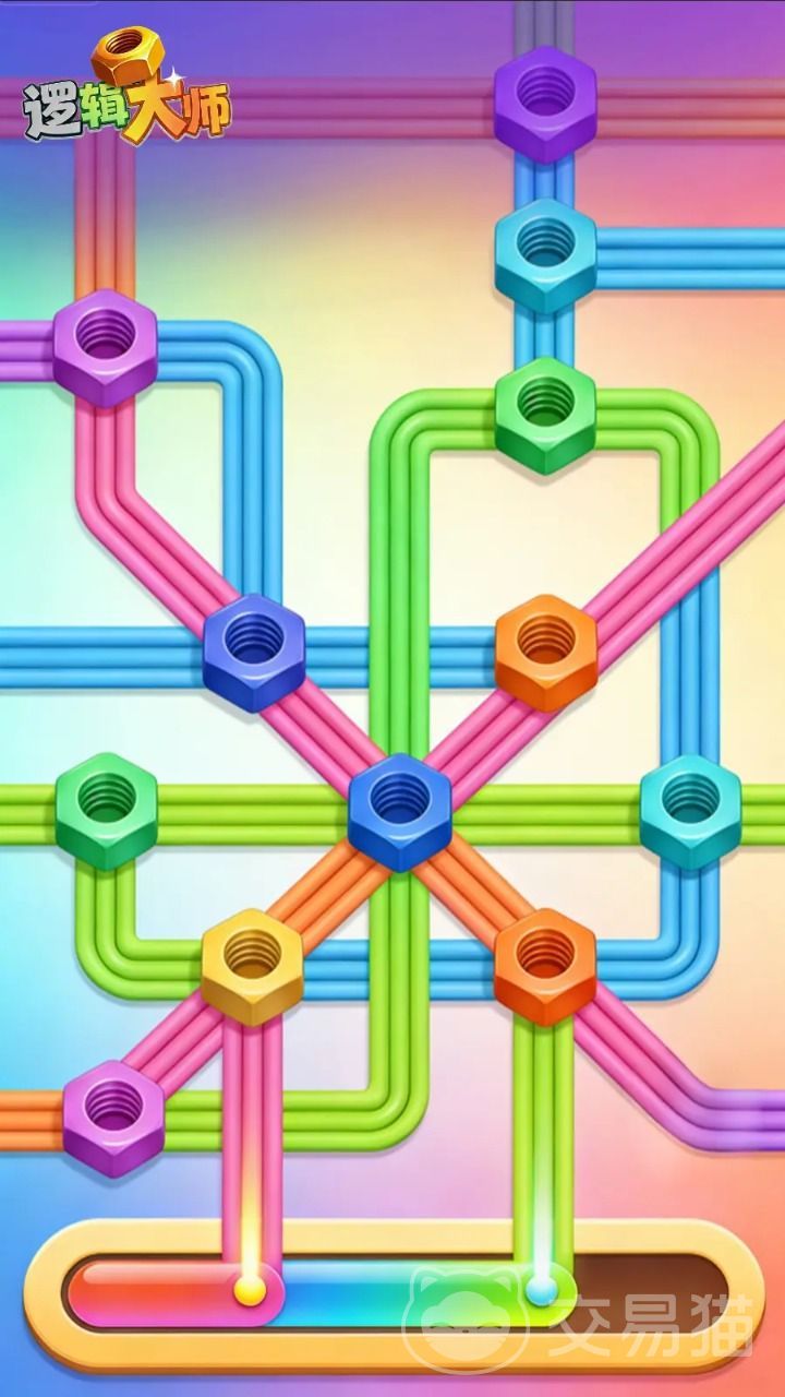 入门阶段的核心任务是螺母归位:界面中分布着红、黄、蓝等多种色系螺母,玩家需通过拖拽操作,将同色螺母沿指定轨道归并至同一路径。关键在于优先处理空间冗余与色彩序列冲突——例如,若黄色螺母过早填满某条轨道,可能导致后续蓝色或红色组件无法按规则嵌入,从而引发连锁卡关。因此,每一步移动都需兼顾当前目标与后续容错空间。