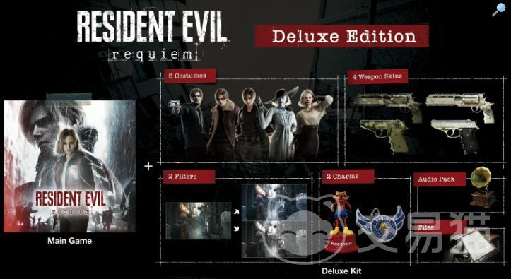 豪华版所含专属内容包括:格蕾丝专属服装两套、里昂专属服装三套;末日风格与黑白电影风格共2种画面滤镜;4款可装备武器外观;浣熊先生挂件、DSO徽章挂件;原声音乐与经典音效包,完整复刻浣熊市标志性听觉体验;以及一份名为“1998年的信”的特殊文档。以上全部内容均以50元差价形式整合于豪华版中,是否值得入手,取决于玩家对角色外观与氛围定制内容的实际需求。