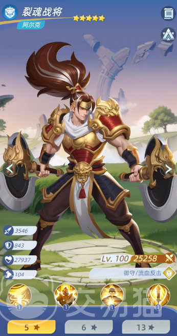 裂魂战将(阿尔克):典型前排反制型战士。主动技能对单体造成298%物理伤害,并有50%概率附加1层流血;命中后提升自身10%免伤与10%防御。受击时,60%概率触发反击,且反击命中后40%概率追加1层流血;每回合开始时,50%概率清除自身所有减益状态,形成持续作战保障。