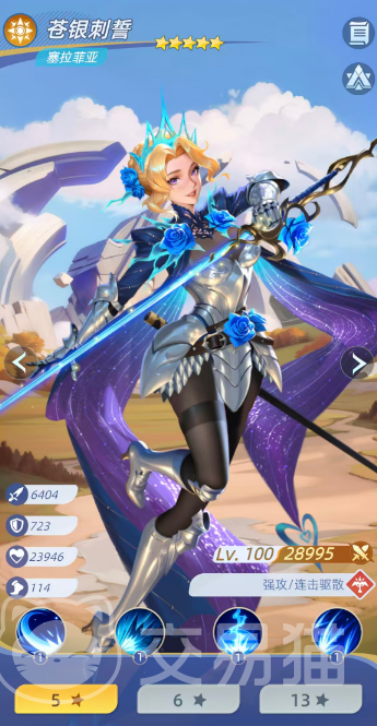 塞拉菲亚:核心机制为精准打击与高生存韧性。开场即对敌方全体施放100%物理伤害,该伤害无视护盾;每回合开始时,对其正前方单位发动单体攻击,若目标空缺,则锁定敌方攻击力最高者施加“曙痕”状态——使目标治疗效果降低50%,且所有负面状态不可清除。其四段连击可集中攻击生命值最低的敌人,总伤达298%物理伤害,全程无视灵魂链接分摊,并额外附加30%真实伤害。自身获得攻击+25%、生命+20%、伤害+10%增益;当受到致命伤害时,立即清除敌方全体增益,并以50%最大生命值复活,进入“蔷魄涅槃”状态,获得可格挡2次伤害的护盾。