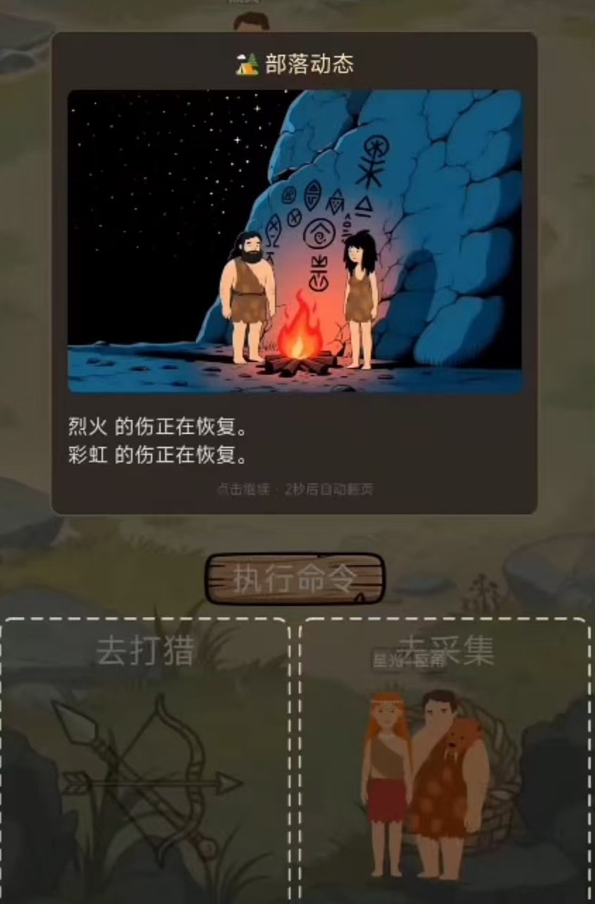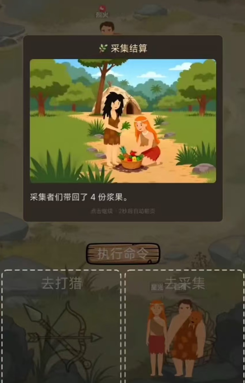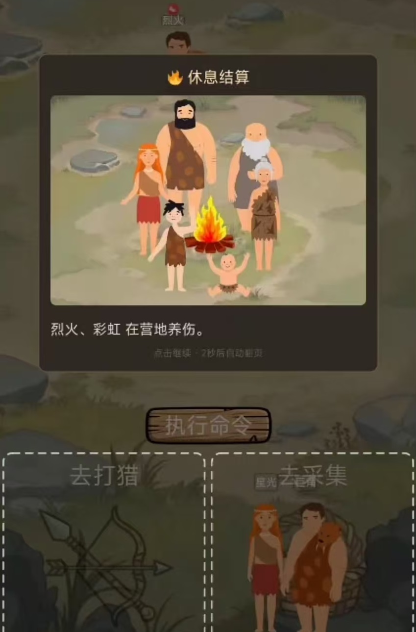 本作采用极简回合制架构,玩家以部落首领身份统筹全局,在世纪交替的宏观时间尺度下维系族群存续。游戏全程依托基础操作逻辑:通过拖拽指令调度族人执行狩猎、采集或休整等行为,同步管理食物供给、人口规模与成员健康三项核心生存指标。画面表现高度克制,不依赖视觉冲击,强调策略深度与决策即时反馈。