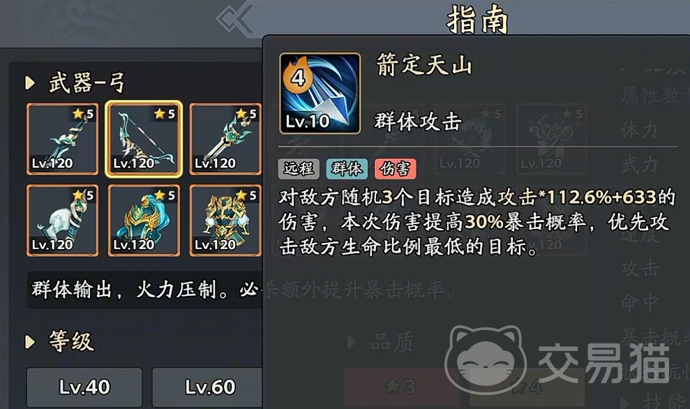 PVE清怪效率标杆。主动技“箭定天山”可随机锁定3名敌人,造成高额倍率伤害;施放时自身暴击率提升30%;并内置智能索敌逻辑——优先攻击当前血量最低的目标。三重机制叠加,显著缩短群怪战斗时长。