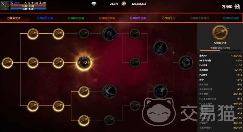 万神殿直接强化英雄的血量、攻击力、防御力三项基础维度;当玩家凑齐指定装备套件后,还可额外激活神圣伤害、暴击伤害、吸血率与韧性等进阶属性加成。此外,随着副本进度推进,系统将逐步解锁专属技能槽位,例如“万福神殿”即可同步缩短技能冷却时间,并提升角色负重上限,实现战斗效率与资源携带能力的双重优化。