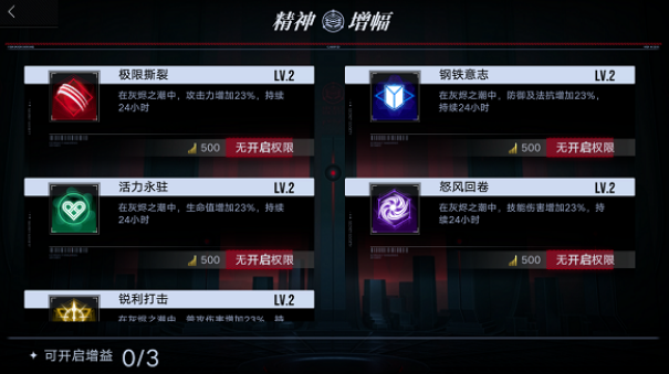 增益的实际效果强度直接受秘盟等级影响:等级越高,各项属性增幅比例越大。因此,日常积极参与秘盟建设类任务(如捐献、协防、资源采集等),有助于长期提升灰烬之潮的整体表现。每项增益持续时间为24小时,同一时间最多可叠加三项不同类型的增益。建议根据当期灰烬使徒特性、队伍职业构成及成员练度,在盟内充分沟通后择优配置,避免盲目开启造成资源低效使用。