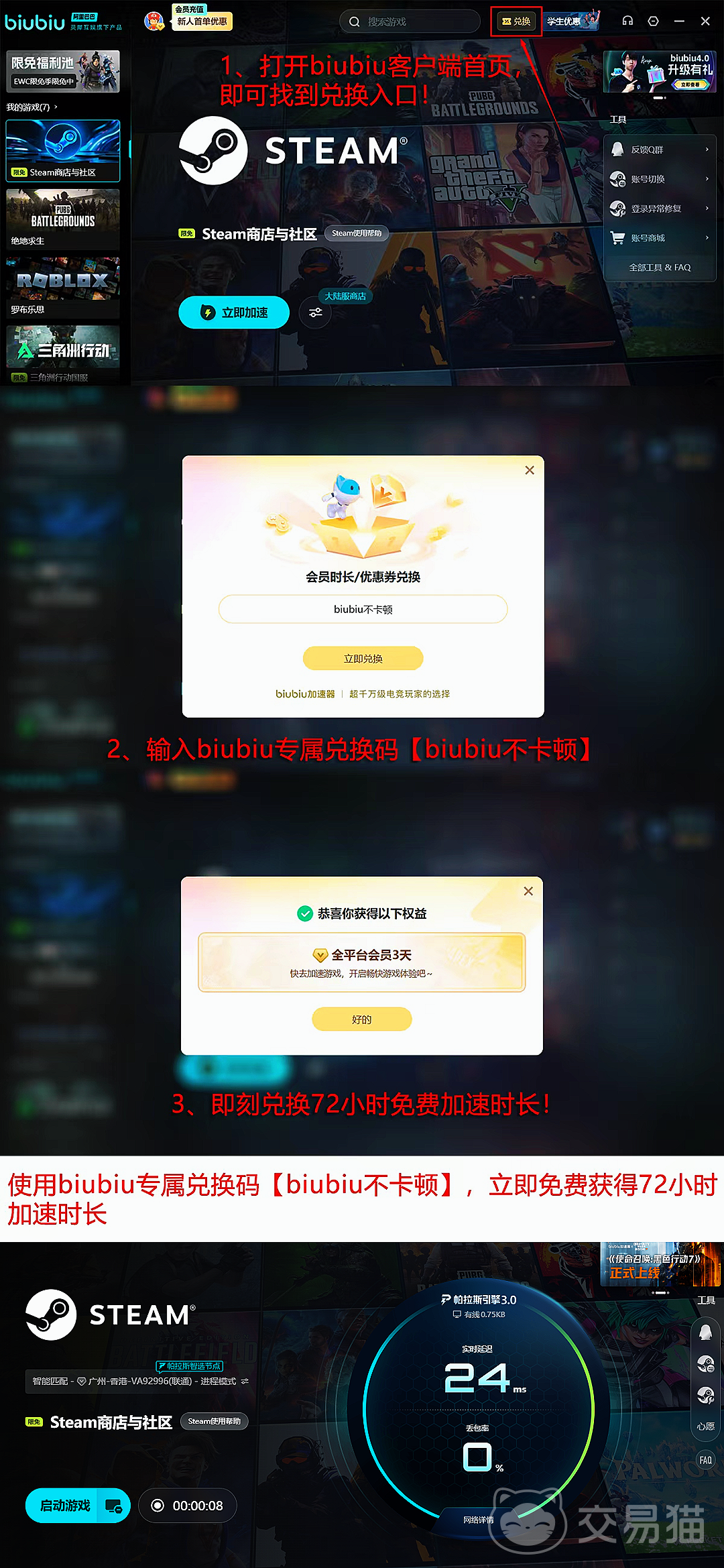 为降低体验门槛,biubiu加速器面向新注册用户提供24小时全游戏免费加速服务;所有活跃用户输入指定口令【biubiu不卡顿】,还可额外获赠3天加速时长,无需绑定支付方式即可即时生效。
