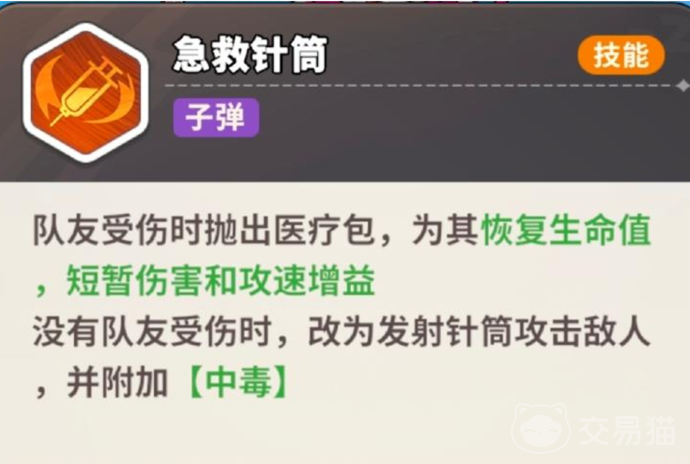 其基础机制围绕“动态响应”展开:普攻“急救针筒”具备智能判定逻辑——当己方存在受伤单位时,优先投掷医疗包,恢复少量生命值并附加持续2秒的伤害提升与攻速加成;若无队友处于受伤状态,则自动转为攻击模式,对目标造成伤害并施加中毒效果,持续3秒。这一双模切换机制显著提升了技能利用率,避免了辅助单位在安全期“空转”的常见问题,使她在不同战斗阶段均能保持影响力。