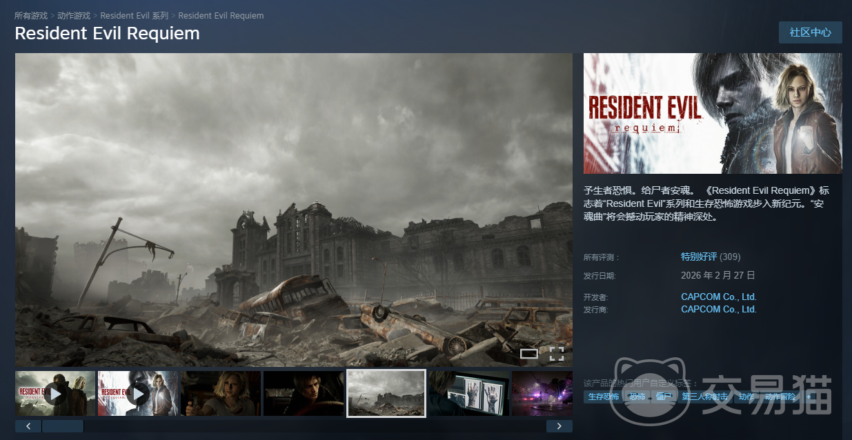 《生化危机》系列作为生存恐怖游戏的标杆之作,已陪伴全球玩家走过三十余年。备受期待的系列终章——《生化危机9:安魂曲》,确认将于2026年2月27日全球同步发售,覆盖PC(Steam平台)、PlayStation 5及Xbox Series X|S全平台。其中,Steam作为PC玩家首选数字发行渠道,现已开放预购与即刻购买功能,无需等待额外解锁时间。