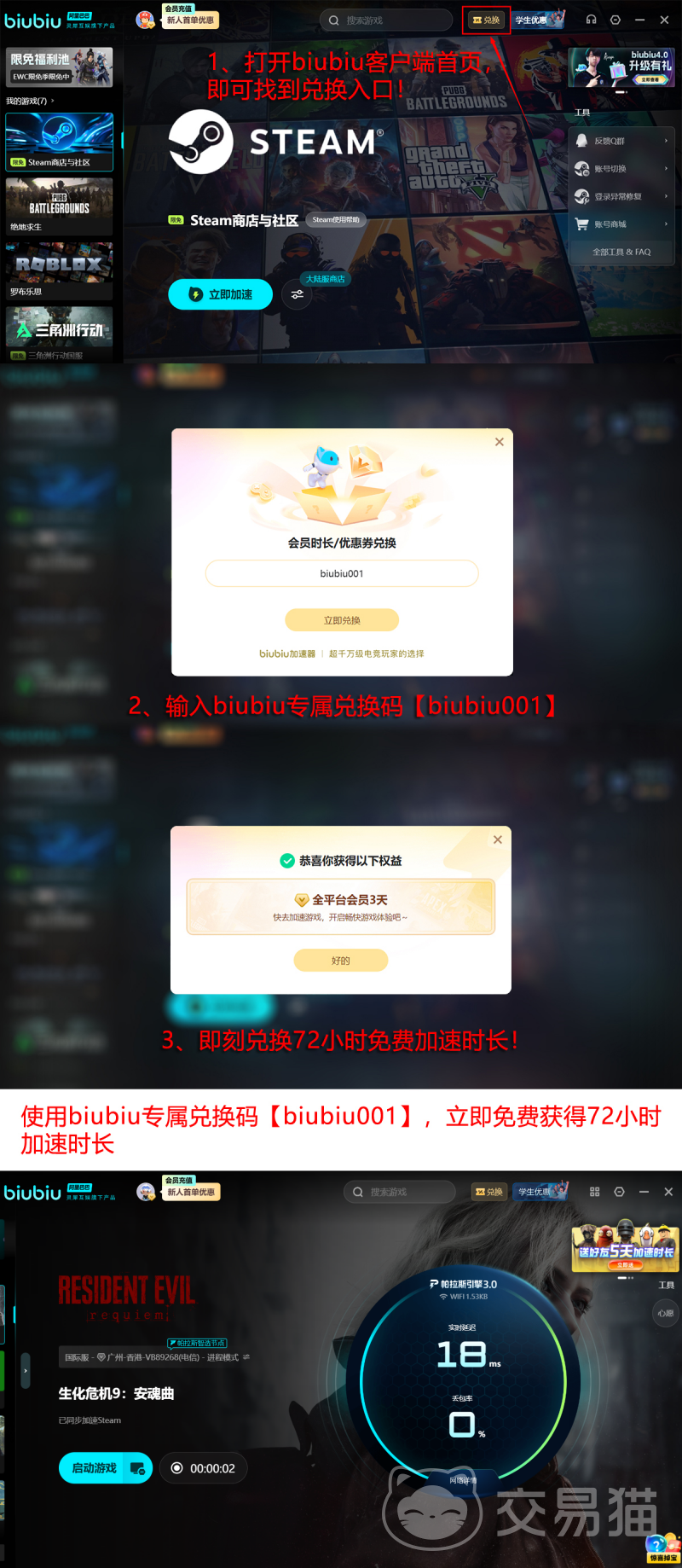 针对海外发行作品常见的网络波动问题,biubiu加速器提供专项优化方案。其自研帕拉斯3.0网络协议引擎支持毫秒级路由优选与动态丢包补偿,有效降低延迟抖动。该工具已被PUBG职业赛事选手小叮当及pero战队列为官方训练指定加速软件。当前新用户注册即可领取24小时基础加速时长;叠加通用兑换码【biubiu001】,还可额外获得3天限时权益,合计最高可享96小时免费加速服务。