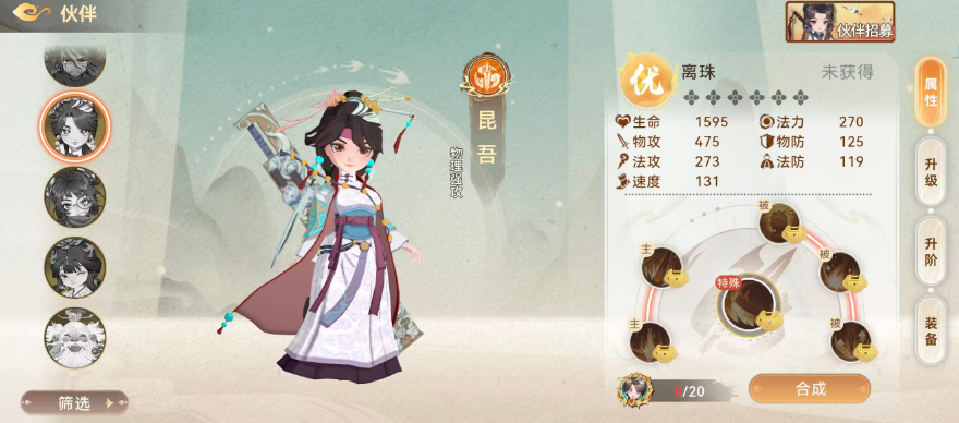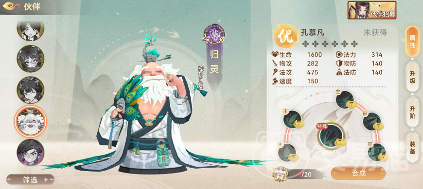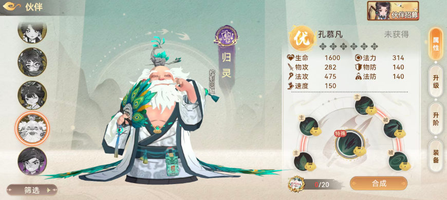 前期阵法构架为“主角+四伙伴”,主角属性固定不可替换,因此策略重心应落在其余四个位置的伙伴选择上。首推控场型角色孔慕凡:其主动技能具备35点先发速度加成,可对单体目标施加混乱状态,令其随机普攻任意单位;命中率与持续回合均受双方封印命中率与抗封属性影响。此外,该技能还附带高概率封印效果,可限制敌方单体普攻及技能释放。孔慕凡另含解控机制——成功解除自身封印时,恢复10%生命值,并于下回合获得10%速度增益,兼具压制与反制能力。