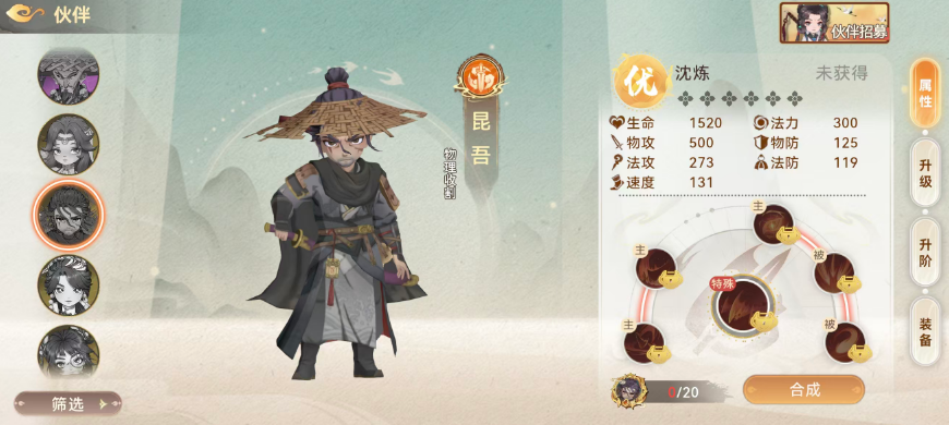 在控制与主力输出成型后,可补充收割定位角色沈炼。其三连击技能每次造成100%+140点物理伤害,但需满足自身生命高于50%方可释放,故更适用于中前期节奏。另一实用技能“云锁天阙”则无视血量限制,对敌方生命最低单位造成140%+150点物理伤害;若成功击杀,则有50%概率施加“束魂”状态,使目标无法被任何形式复活,强化战斗终结效率。
