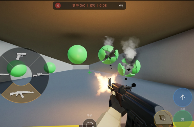新手玩家可通过双模式训练场快速建立手感:开阔平原靶场侧重基础压枪与距离判断,室内靶场则强化掩体利用与近距离反应能力。场景中配置气球靶、环形标靶、动态AI靶人及可破坏木箱等多维目标,配合真实后坐力系统——不同枪型拥有独立的晃动幅度、恢复速率与声音反馈,使M4A1的稳定点射、AKM的爆发压制、AWM的狙击震感均呈现显著差异。