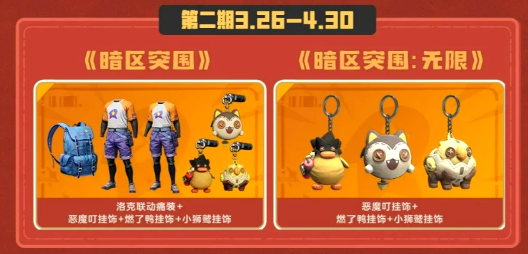 本次联动还拓展至同发行方旗下另一款产品——《暗区突围》。联动分两阶段进行:第一阶段于3月3日开启,第二阶段随《洛克王国:世界》公测同步于3月26日上线。玩家在双方游戏中完成对应任务,可获取限定道具及外观奖励,包括可在《暗区突围》中使用的“小洛克”主题装扮,实现IP间风格反差下的趣味融合。