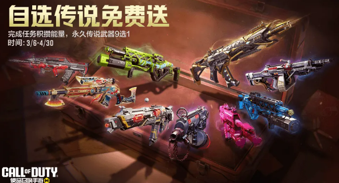 “传说武器自选计划”是本月含金量最高的长期任务,3月6日起正式上线。活动提供9款传说武器供玩家自由选择。参与规则为:每周通过任意对局累计能量值,满16点即可兑换1把永久传说武器;单周最高可获取4点能量。若暂未集齐,可先行领取3天体验卡。此外,每周首次分享该活动页面,还可额外领取“传说武器体验自选宝箱”1个,内含随机传说武器3天使用权。