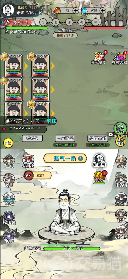 游戏采用独具辨识度的熊猫人美术风格,融合市井烟火与玄门气象,构建出既亲切又奇诡的修真图景。主角当前处于练气期,虽战力尚浅,但周身已显现被锁链封印的神兽、神器及轮回印记等关键设定元素,暗示后续广阔的成长纵深与高能剧情伏笔。
