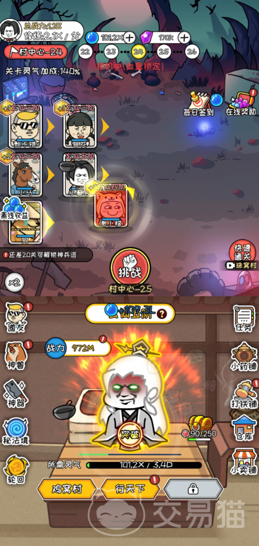随着修为提升,世界交互深度同步拓展:可结识“翠花”“甄不错”等性格鲜明的同行道友,共赴险地、协力破关;村中心区域灵气加成达140%,但单凭高达1.2B的总战力亦难独闯,需倚仗伙伴协同或启用挂机机制——角色离线后仍可持续修炼,甚至于十里坡静悟飞升,成就一方散仙威名。