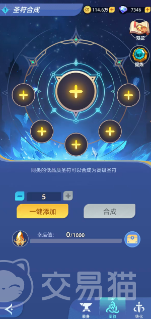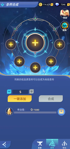 圣符系统则强调类型专一性与等级绑定机制。仅限相同种类(如“雷鸣圣符”仅能与“雷鸣圣符”合成)、相同阵营的圣符参与融合,跨类型组合无效。合成门槛为至少2枚同类型圣符,失败时所有投入材料将被分解为洗练精粹。成功概率随单次投入数量增加而提升;同时引入“幸运值”累积机制——每次失败均增加固定幸运点数,累计达1000点时,下一次合成必得橙色圣符,且幸运值归零。实战建议采用5枚同品质圣符批量合成,例如5张绿色圣符稳定产出1张蓝色圣符,兼顾效率与成功率。