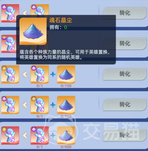 道具转化模块具备严格单向性与阶段性限制。部分转化功能需角色达到指定等级方可开启,每日有固定使用次数上限,且两次操作间设有冷却时间。以英灵升星为例:4位五星圣光英灵可转化为1位六星圣光英灵;亦可作为通用升星材料替代非指定五星英雄。若涉及跨阵营转化(如将人族英灵转为魔族英灵),必须额外添加魂石晶尘——该资源承载多族本源之力,用于触发随机同系英灵召唤,因此跨阵营操作前须提前储备足量魂石晶尘。
