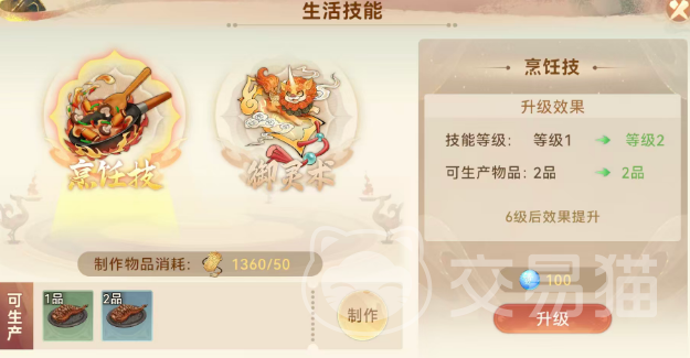 灵社内嵌双轨生活技能体系:烹饪术与御灵术。二者可同步研习,互不冲突。烹饪术消耗角色活力制作各类食谱,食用后获得对应属性增益,效果强度受烹饪技能等级影响——等级越高,触发高阶属性加成的概率越大;御灵术则聚焦宠物培养,通过消耗每日活力制作御灵道具,为灵宠提供持续24小时的战斗能力强化。不同道具作用维度各异,其生效概率亦随御灵术等级提升而优化。