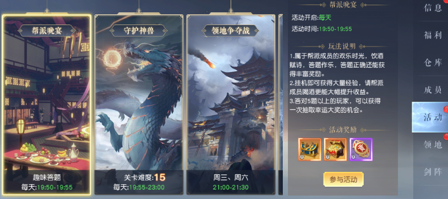 加入活跃帮会是提升长期体验的关键策略。帮会日常任务支持累计完成,每日投入固定时间即可稳定获取经验、灵玉及稀有材料;所获经验同时计入帮会建设值,推动帮会升级后,每周可领取更高阶的补给礼包,并开放更高等级的团队副本入口,显著降低高难内容的通关门槛,也增强社交协作感。