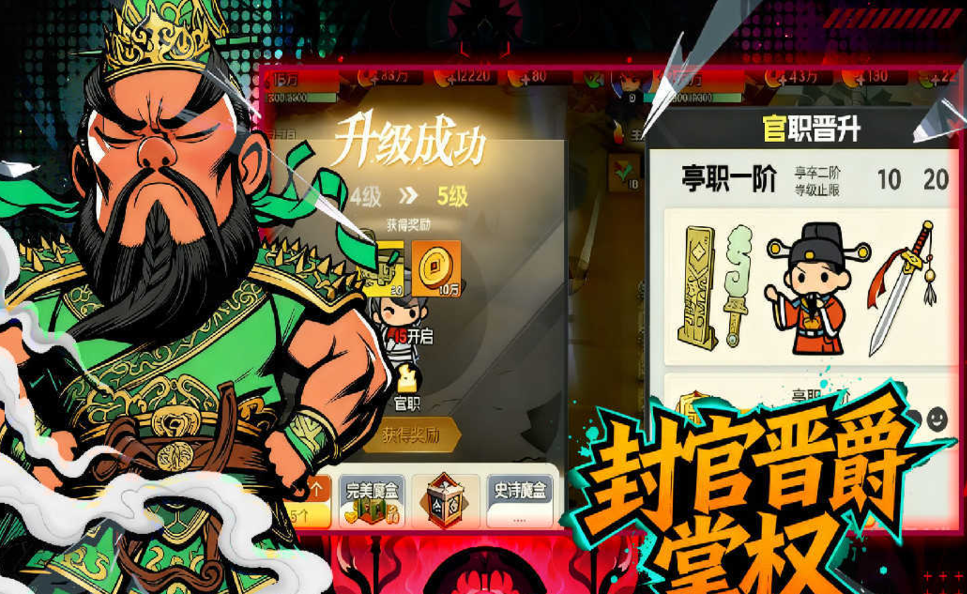 剧情采用轻量化叙事方式,紧扣三国演义主线脉络,还原赤壁之战、官渡之战、五丈原等标志性战役场景。角色美术采用Q版建模风格,兼顾辨识度与亲和力,使人物形象更易被大众接受。同时,武将之间存在多重羁绊关系——例如“桃园结义”“卧龙凤雏”等组合,激活后可额外提升攻击、防御或特殊增益效果,为阵容搭配提供策略纵深,也为后期攻坚高难度内容奠定战术基础。