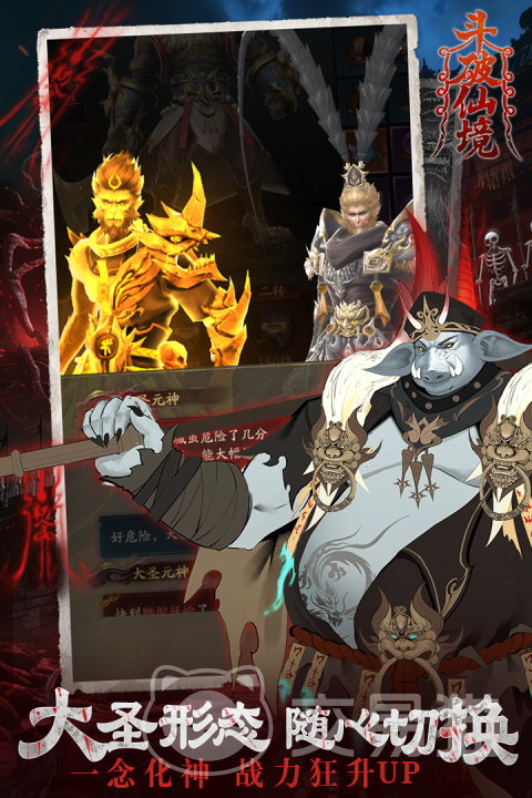 玩家在游戏内扮演齐天大圣角色,支持多形态外观切换功能,不同形象不仅影响视觉呈现,还关联特定技能组合与隐藏剧情触发点,进一步拓展策略维度与探索乐趣。