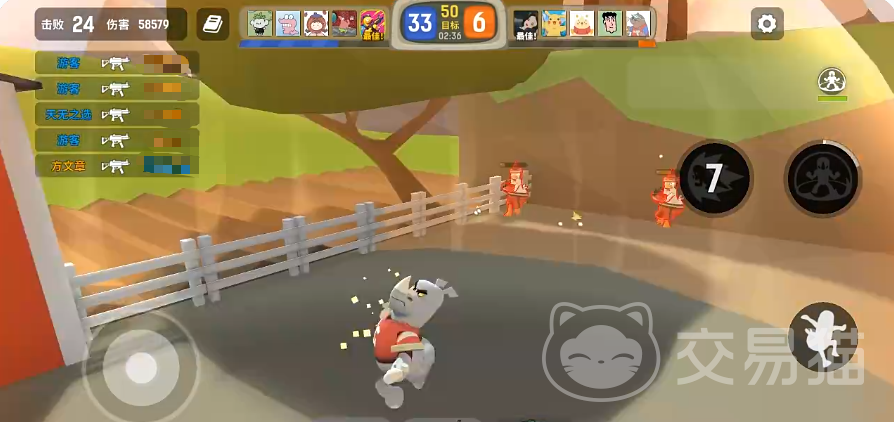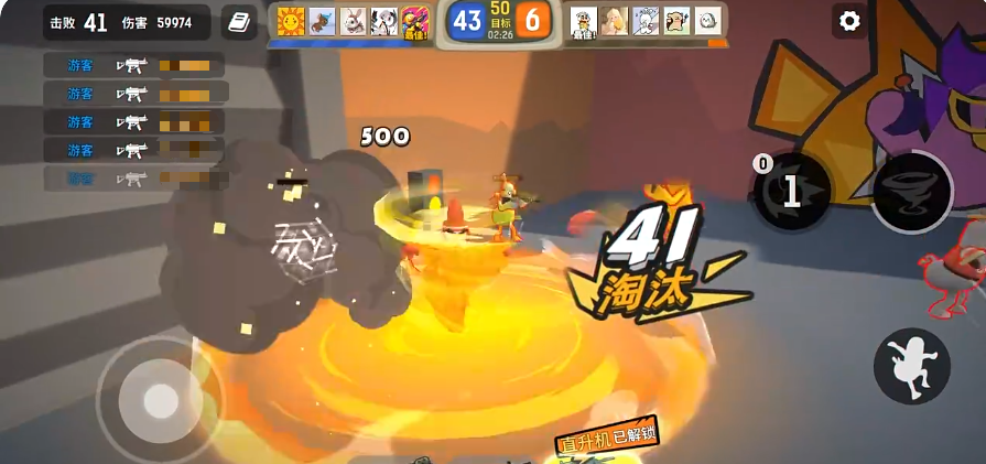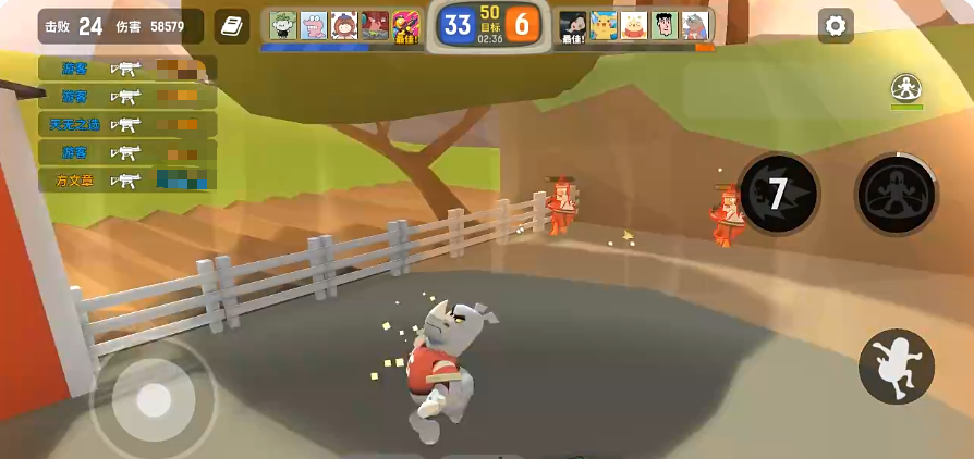 开局前需选择一名动物角色,不同角色拥有专属技能机制,适配多种作战倾向。进入战场后,界面底部常驻武器栏支持实时切换,已解锁武器均可调用,包括步枪、手枪、狙击枪、榴弹发射器、电击枪及爆裂枪等类型,各具差异化性能表现。