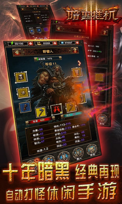 《暗黑挂机》融合经典暗黑题材与轻量化挂机机制,打造兼具深度策略性与休闲自由度的手游新体验。游戏以高饱和魔幻美术风格构建沉浸式世界观,场景光影层次丰富,技能特效具备电影级动态表现力,玩家将在诡谲幽邃的暗黑大陆中展开探索、战斗与成长之旅。