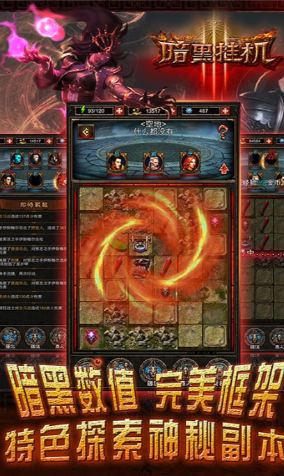 从视觉呈现到音效设计,《暗黑挂机》均围绕“沉浸感”进行深度打磨:环境音效随区域变化动态切换,BOSS战配乐采用交响化编曲增强史诗氛围,UI界面采用哥特式字体与蚀刻纹理,进一步强化暗黑美学统一性。玩家可在副本攻坚、世界Boss争夺、跨服竞技等多元玩法中,自主选择专注方向,实现玩法偏好与角色定位的高度契合。