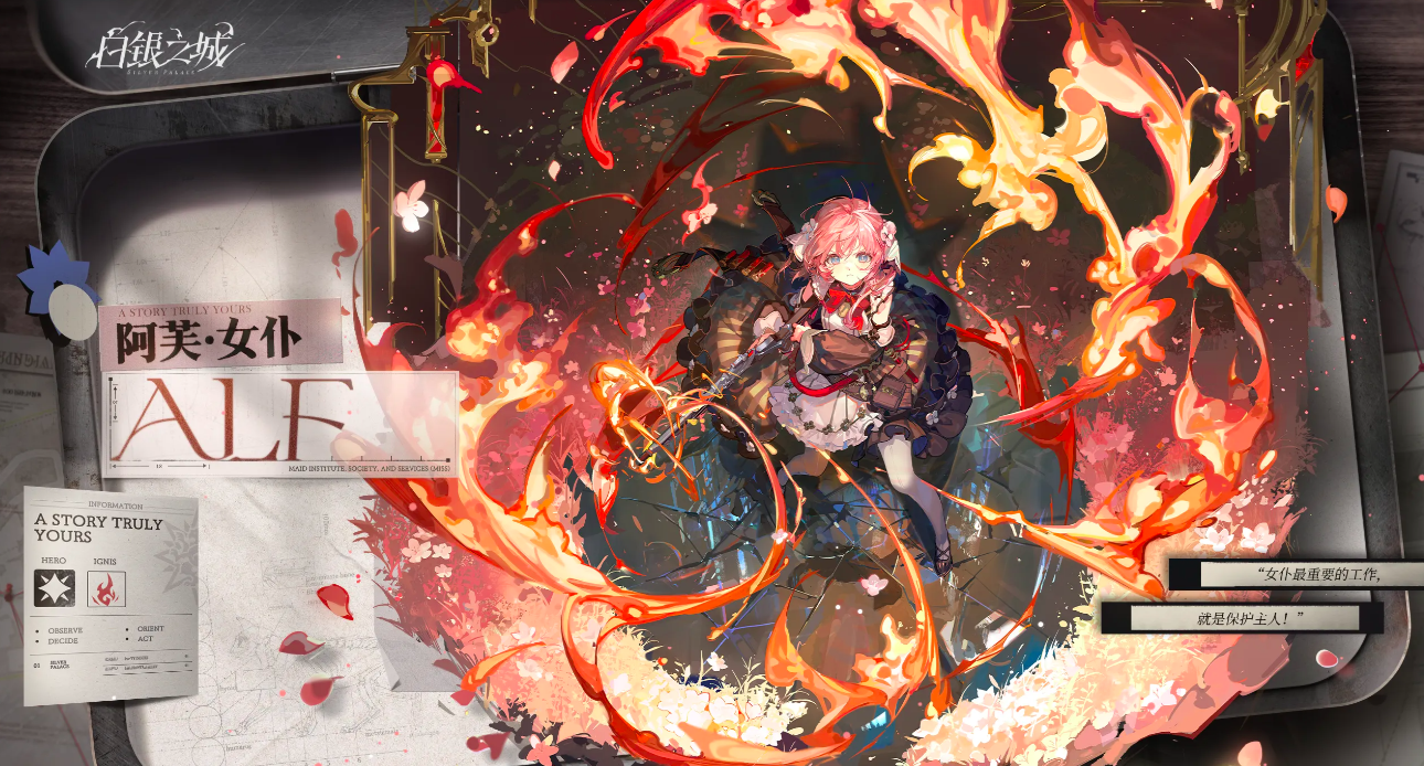 第四位是阿芙女仆,以绝对忠诚为行为准则,将守护主人视为最高使命。日常表现略显笨拙,但进入战斗状态后展现出极强的战术执行力。主武器为霰弹枪,角色成长至特定阶段后可激活背部反应釜模块,实现武器形态转换——由霰弹枪自动切换为喷火枪,大幅提升范围灼烧伤害与战场压制力。