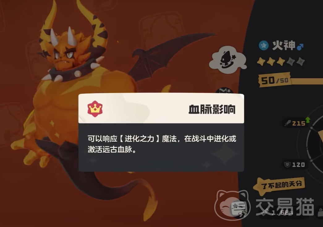 完成首领化后,火神进阶为烈火战神,其特性“助燃”获得质变——该效果不会因换宠而重置,可持续累积并强化后续火系技能威力。因此,技能搭配需转向以持续叠层+爆发收割为核心逻辑:防御、热身、吹火与暗突袭构成最优解。防御延续承伤职能;热身替代力量增效,使下一次技能释放威力翻倍,与高层数助燃形成强力联动;吹火作为核心输出技,每次使用均可提升20点技能威力,配合热身与助燃可实现指数级伤害跃升;暗突袭不仅基础伤害出色,更附带吸血效果,大幅提升烈火战神的站场持久性与容错空间。