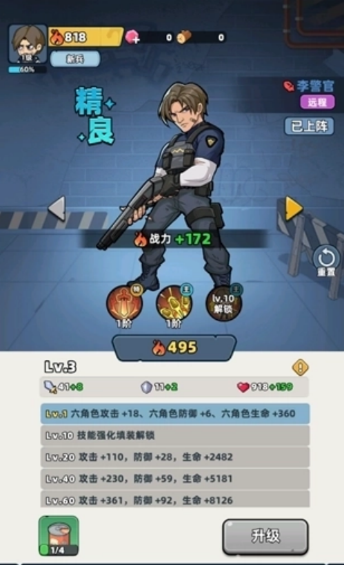 游戏融合了轻度策略构筑、卡牌式角色养成与动态战场调度机制。职业体系覆盖远程射手、近战先锋、支援辅助及重装防御四大定位,每类角色拥有独立成长路径与技能树,属性差异显著,协同搭配直接影响战斗效率与关卡通过率。