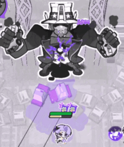 最终Boss“星条战车”强度有所提升,弱点属性仍为红色、黄色与紫色。其常规技能包括多枚追踪式汽车导弹与大范围双拳砸地攻击;进入二阶段后,会向玩家所在区域空投炸弹,并甩出帽子造成溅射伤害。应对重点在于把握节奏:在Boss投掷完汽车炸弹后,迅速对落地车辆进行染色,可立即触发连锁爆炸反伤,大幅缩短其硬直时间并加速进入弱点状态。推荐配置天照、奥丁与狄安娜三人组,三者技能覆盖范围广、染色响应快,能高效承接二阶段高压输出需求。