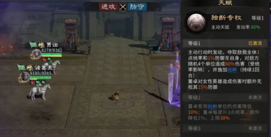 阵容构建是霜火争霸胜负的基础。推荐采用董卓、诸葛亮、贾诩组成的三核体系——该组合兼顾生存韧性、群体压制与团队增益,适配多种战场态势。其中董卓定位为前排主坦,凭借高基础防御与低养成门槛,能稳定承担大量伤害;其被动技能提供伤害减免与持续回血效果,显著延长前排站场时间,建议将其置于首发位置,有效吸收敌方首轮爆发,为后排创造安全输出窗口。